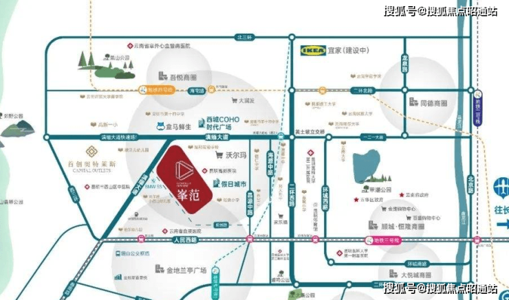 【纵横交通贯穿西北】项目位于滇缅大道,沿滇缅大道可快速汇入人民西路,20分钟即可到达市中心翠湖小西门商务区和顺城恒隆商务区;经草海隧道25分钟即可到达南亚商务区;沿滇缅大道高速公路(正在建设中),达昆楚高速公路通往楚雄.大理等地。此外,项目2公里内有30多个公交车站,3公里内覆盖地铁3公里内。.4.7(规划中)号线,4公里距昆明高铁西站(在建)。