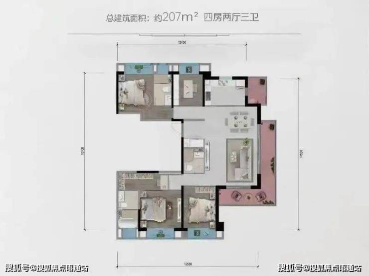 现主推建面约 115㎡、 139㎡、 207㎡的三至四房, 全纯板式结构设计,更方正明亮,户户朝南、南北通透。