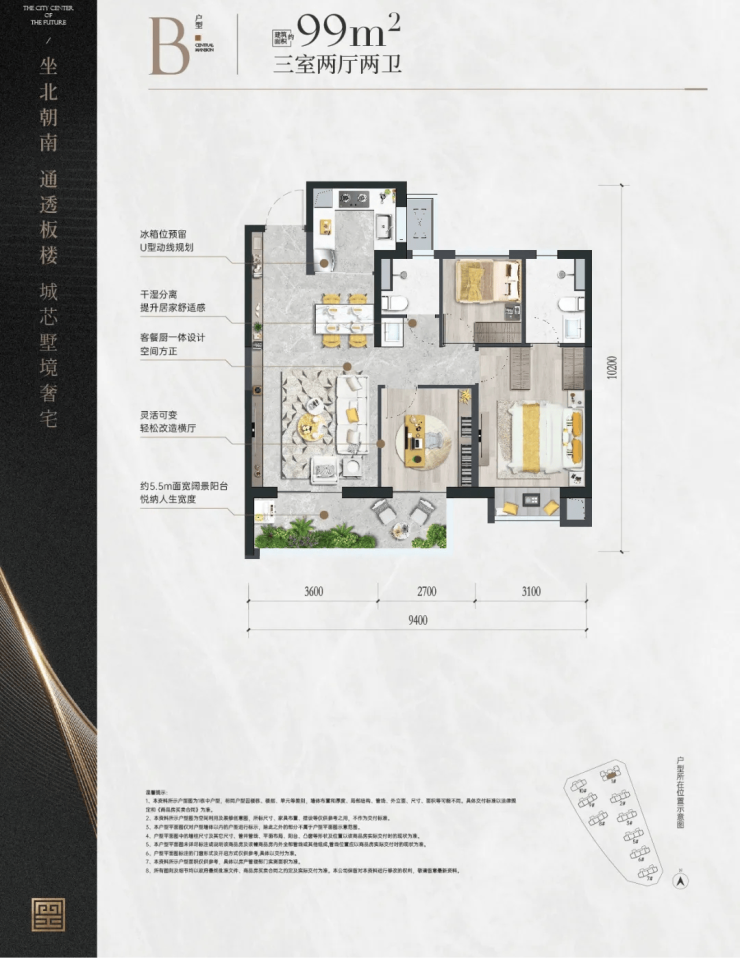 户型设计:主打94-143㎡墅质宽幕奢宅,采用纯板式设计、南北通透、三面宽户型,空间利用率高,满足改善型需求。