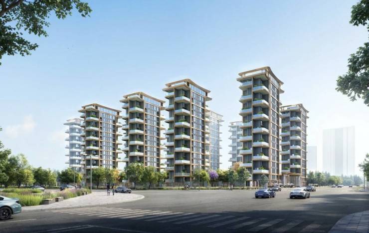 项目规划为13栋17层小高层,层高3米以上,楼间距开阔,确保充足采光和通风。外立面采用灰色调与金色线条搭配,整体质感现代简约,符合改善型客群的审美需求。