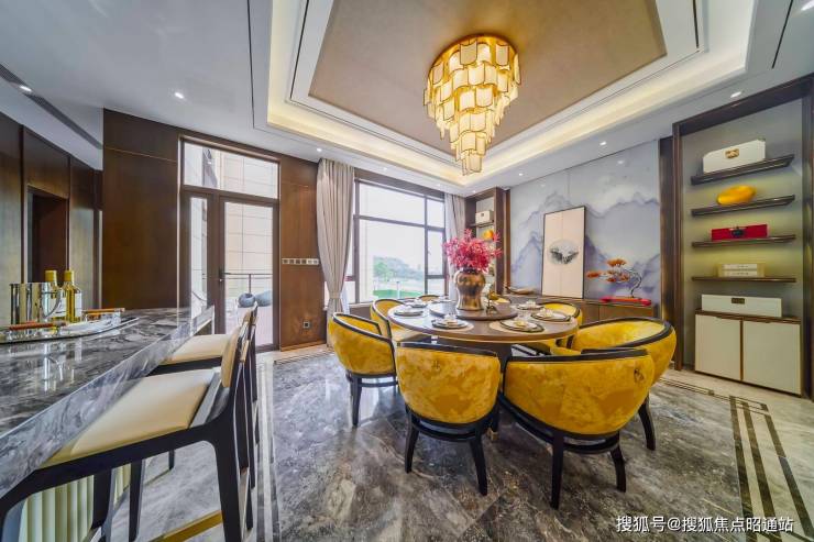 新中式园林风格,融入现代艺术元素,跌水+雕塑+景园(澜园、石园、梅园、弈园、苔园)一方青山,一池碧水,打造“沉浸式”园林设计。