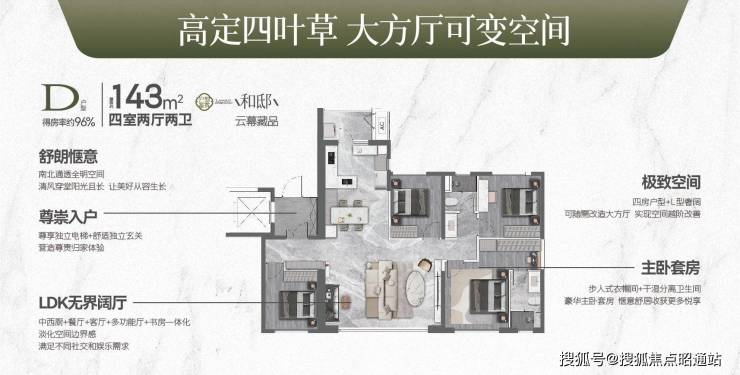 建面约143㎡ 四室两厅两卫 | 得房率约96%