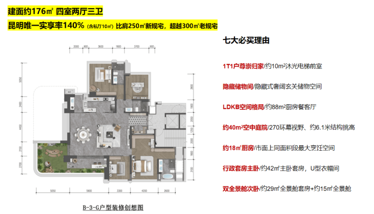 价值七 高定进阶产品——春城核心,昆明四代住宅首选, 超140%实享率,约40㎡、6M挑高空中花园,约10㎡入户花厅