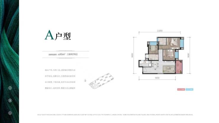 多样化户型:主力户型为95-207平方米的三至四房,包括95㎡(三室两厅一卫)、99㎡(三室两厅两卫)、115㎡(三室两厅两卫)、135㎡(四室两厅两卫)、143㎡(四室两厅两卫)等,满足不同家庭需求。