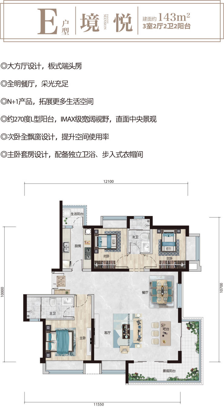 【产品规划】:11栋住宅,建面约97-144㎡(20-27层),规划建设2所幼儿园及1所36班小学