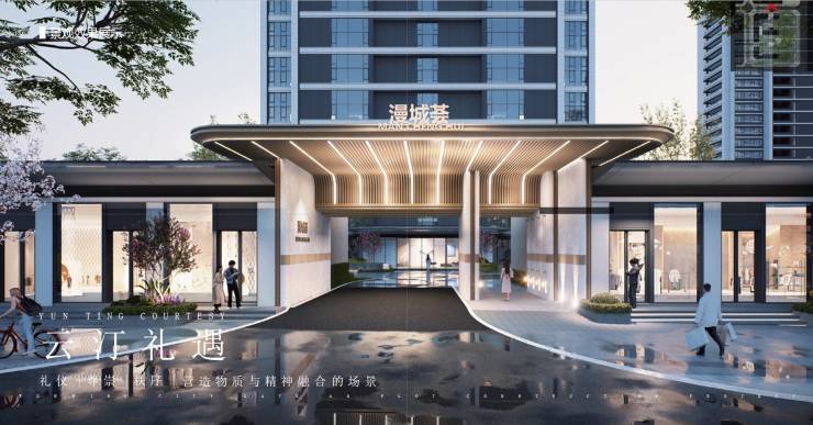 •打造花园式归家。设计风格上,大堂是采用石材与极简美学,营造出高奢入户大堂。