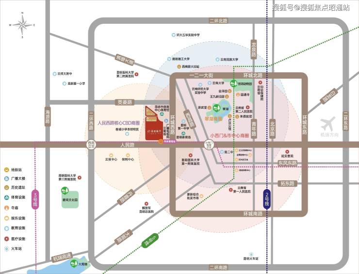 已建成的昆明传统小西门商圈,南屏街商圈、恒隆广场;云大医院、春城小学等都汇聚于此,无论城市发展怎样扩张,核芯资源始终沉淀于中芯。