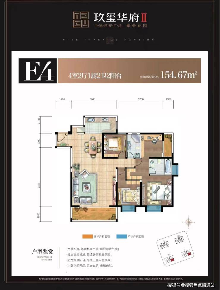 主力户型:88-155㎡三至四居(飘窗设计),复式164-382㎡