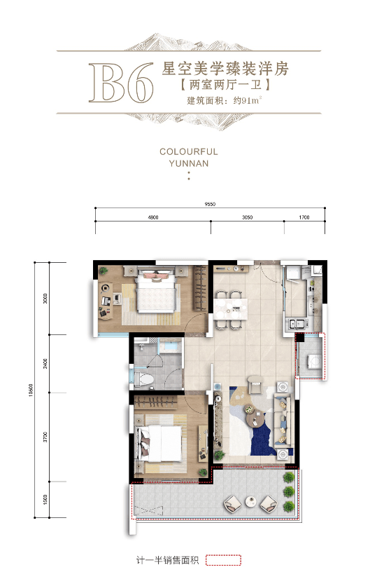 纯洋房社区,公摊面积小,得房率高;依山就势的围合分布式布局,保证了家家有景,户户独享的景观资源。
