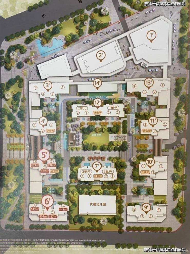 二期包含:二期轮廓线范围内共6栋地上建筑及地下2层车库(除一期地下范围以外剩余的全部地下室),其中∶3-2、4、11、12、13#楼为住宅,14#楼为商业,公建配套含:11#楼一层公共卫生间122.54㎡,13#楼一层物管用房41.48㎡,3#楼一层物管用房41.09㎡,4#楼-1/1F物管用房334.37㎡。