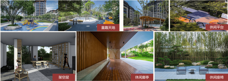 社区内部打造由幼儿园到青年再到老年的全龄段设施和场所,有0-12岁童趣天地,满足社区邻里交流的全龄化多功能区域、休闲廊亭、休闲平台等,带给业主更多的尊贵体验。