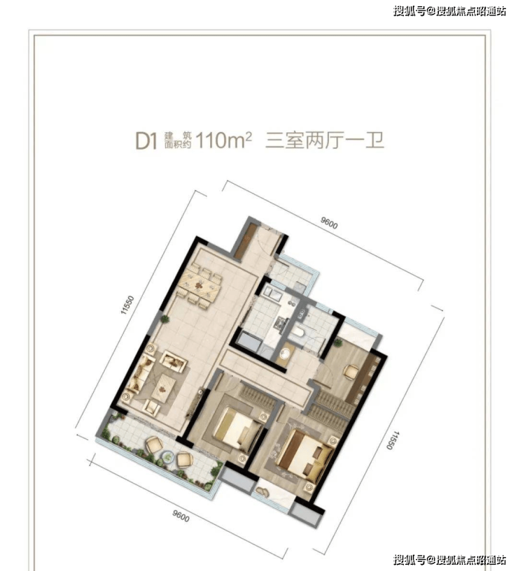 同样朝南的公寓类似99平米的公寓,格局空间更大,卫生间更多。主卧空间比较大,有衣帽间和独立卫生间。