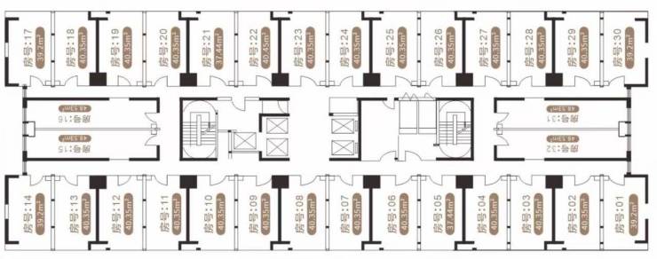 •精装SOHO产品面积区间为 44-45㎡。 (单套、整层可售)