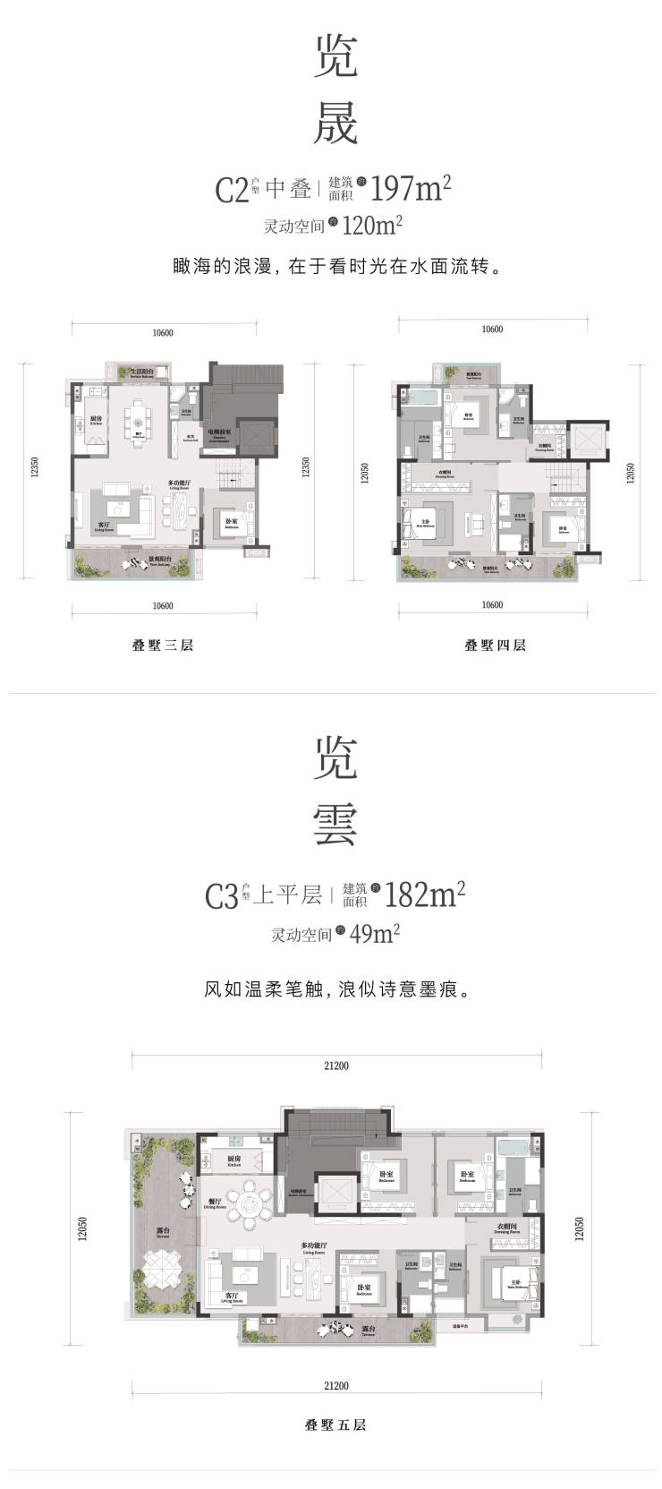 约125-165㎡真洋房、约141-198㎡瞰海叠墅
