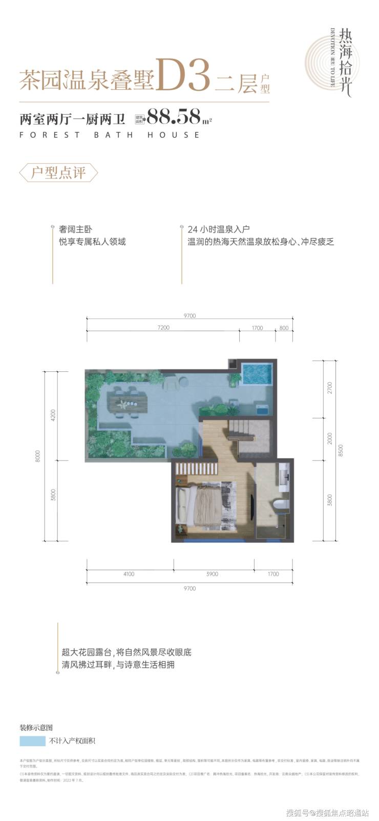 北侧紧邻西部战区军区疗养院,足以可见生态环境之优,在热海拾光可以体验一种全新的繁华生活,在家畅享私密温泉泡浴,出门即享城市缤纷霓虹。