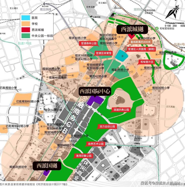 项目东南侧配建24班小学,周边6宗教育用地规划(含幼儿园至高中)