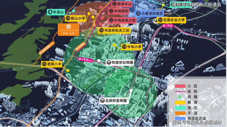 项目鼎占北市中轴,与周边和谐世纪、爱琴海等五大商圈联动发展,加之北市区为昆明最早发展区域,发展醇熟,资源丰盛,人气旺盛,目前地铁8号线/2号线,龙泉西路建设稳步推进,项目对面小麦溪村拆迁换新城市界面,片区交通,规划再升级,形成聚合效应,价值前景可期。