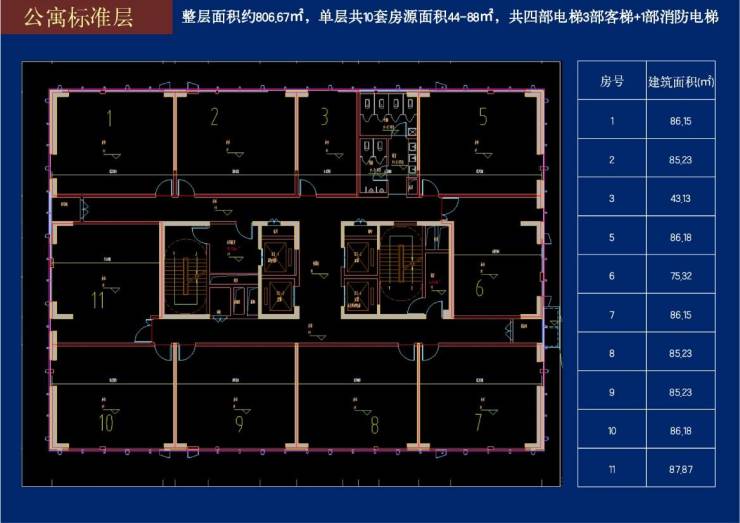 5、面积段 44-88 平, 可变空间大 (办公利用率高), 便于后期改造使用;