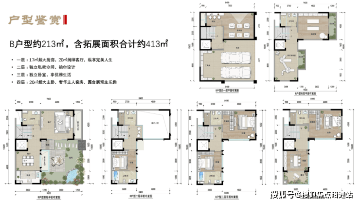 产品:A户型:190㎡产权面积约280㎡;B户型:213㎡产权面积约310㎡;C户型:303㎡产权面积约490㎡