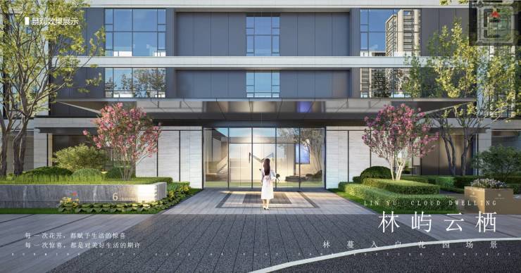 •打造花园式归家。设计风格上,大堂是采用石材与极简美学,营造出高奢入户大堂。
