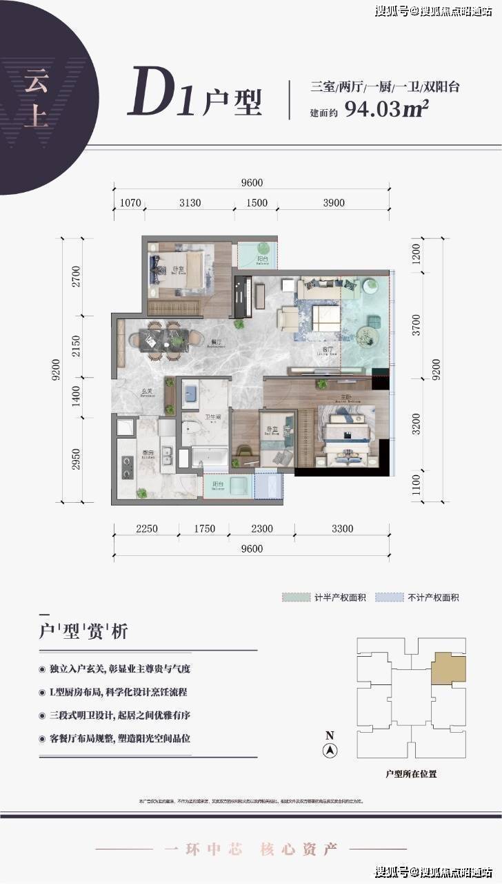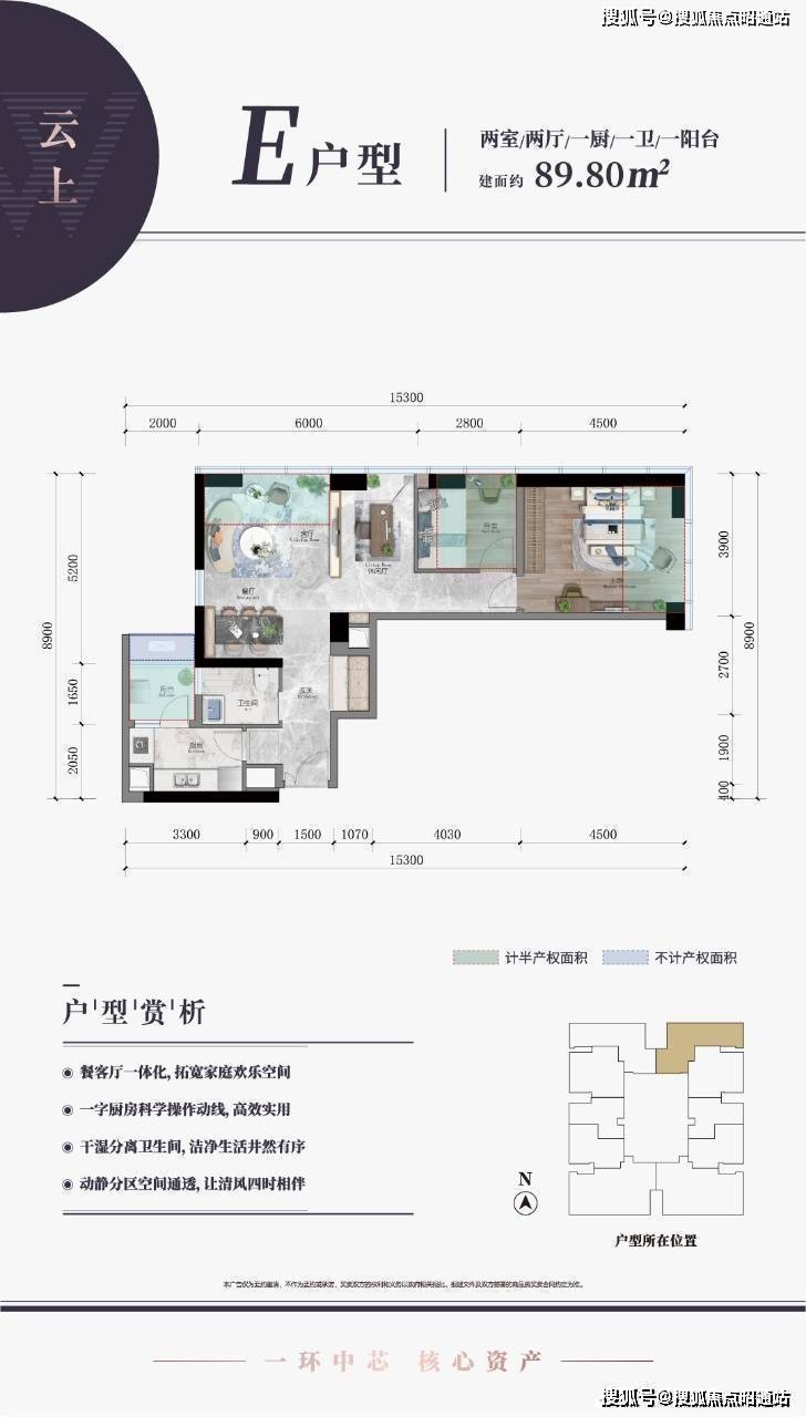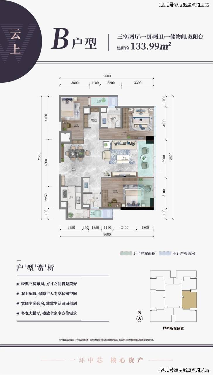 B塔为住宅楼:高约160米,共49层,配置10.2米挑高大堂,5部品牌高速电梯。