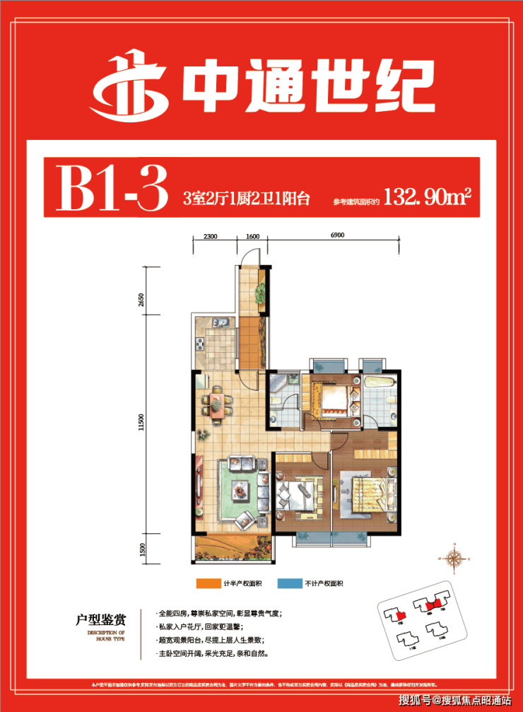 主力户型:88-155㎡三至四居(飘窗设计),复式164-382㎡
