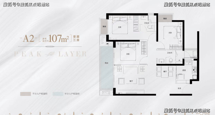 5#A2户型(约106㎡):“3+S”室-两厅-双卫-双阳台