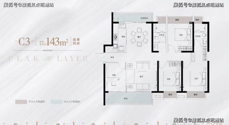 5#C2户型(约138㎡):“4+S”室-两厅-双卫-双阳台