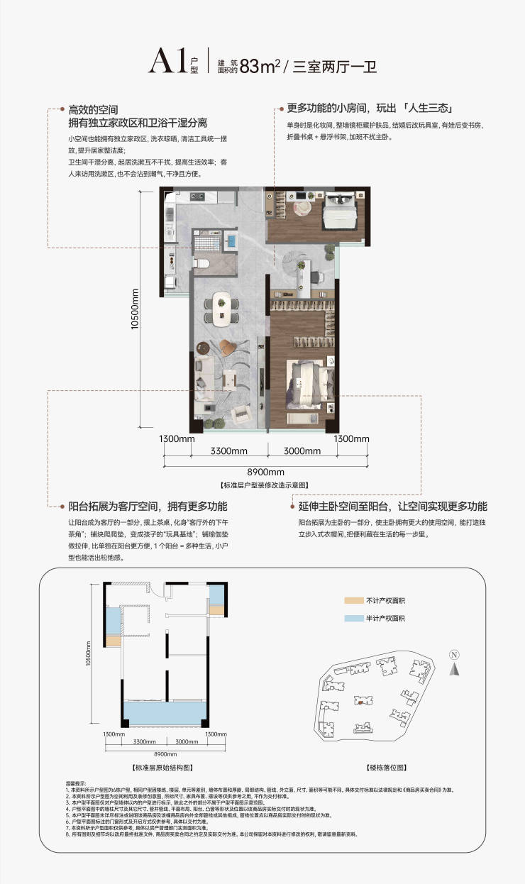 二期在售:83㎡(三房一卫)、95/99㎡(三房双卫)、108㎡(三房双卫)、129㎡(四房双卫)