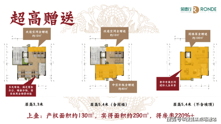 超高赠送率,平均赠送率达222.94%,赠送面积超购买面积,得房率远超传统商业、别墅、第4代住宅,吊打全市场4代住宅!