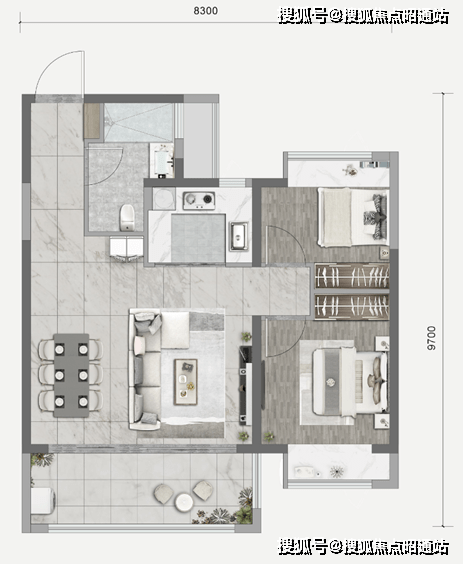 7栋A1户型 | 78㎡ 2房2厅1卫