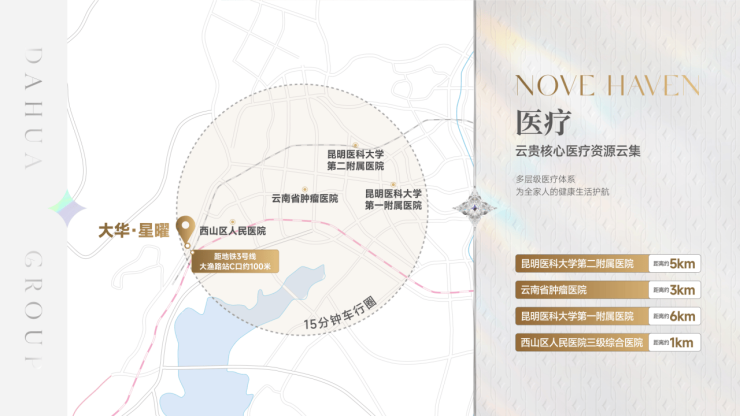 昆明医科大学第二附属医院、云南省肿瘤医院、昆明医科大学第一附属医院、西山区人民医院三级综合医院,多层级医疗体系,为全家人的健康生活护航。
