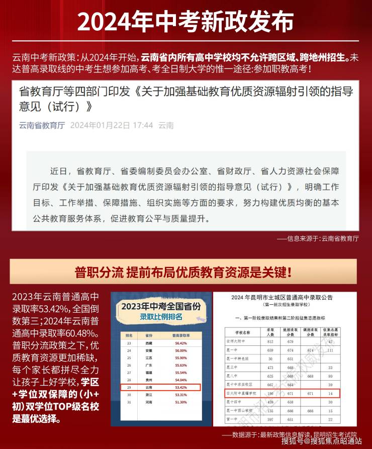 2024年云南中考新政发布:从2024年开始,云南省内所有高中学校均不允许跨区域、跨地州招生。未达普高录取线的中考生想参加高考、考全日制大学的唯一途径:参加职教高考!