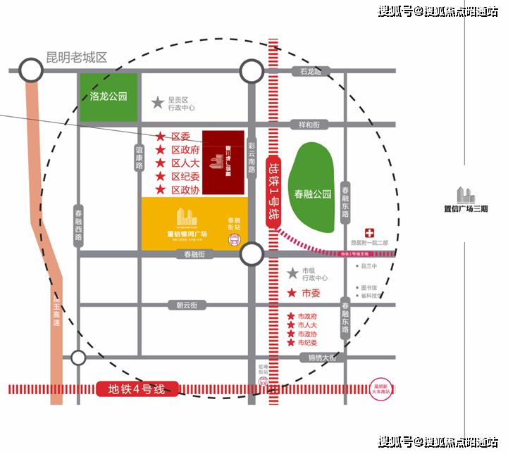 且本项目的地铁站春融街1号线支线经过市政府即可直达昆明新南站,直线距离仅3公里。