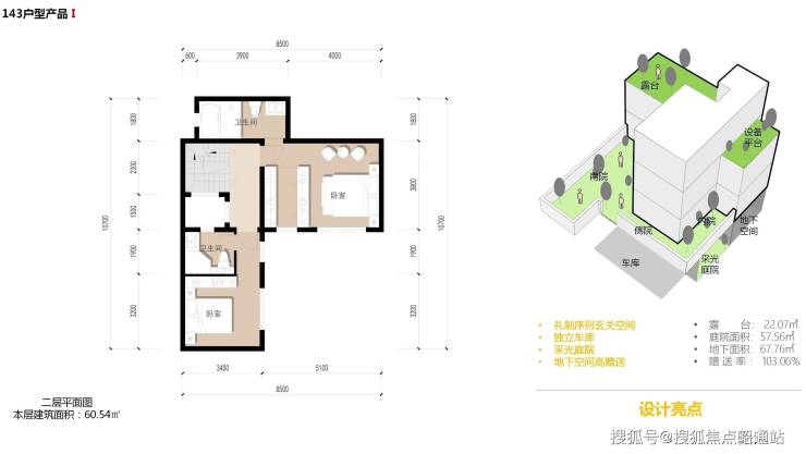两轴:交通轴线分割地块,叠拼产品私密性更佳;景观轴线正对园区主入口,一步一景;
