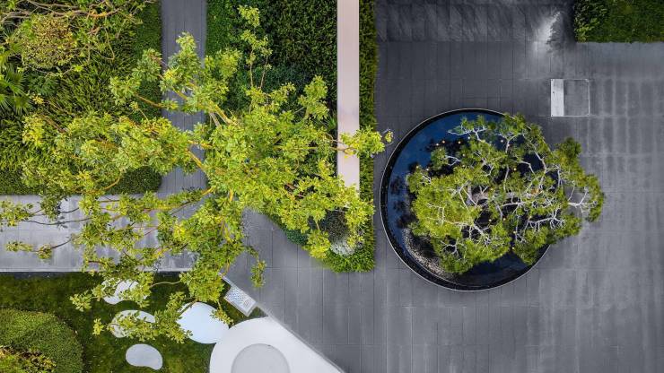 特邀上海水石设计大师团队,通过巧妙提取经典元素“翠湖八景”和色彩,遍植全球甄选而来日本黑松、橄榄树、红豆杉、羽毛枫、清香木老桩等名贵草木,匹配居者的尊贵身份,达成与自然的深层连接。